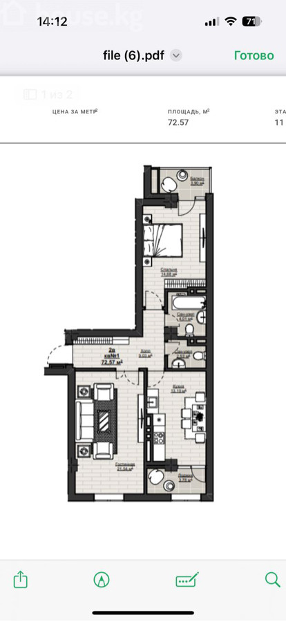 2-комн. кв., 73 м2, 11 этаж из 14