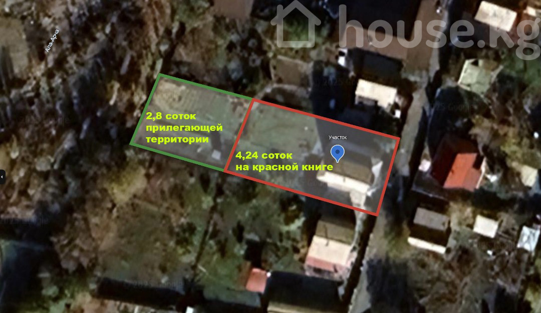 Продается дача в с.Байтик. Участок находится на первой линии от реки Ала-Арча. Обеспечен электричеством, водоснабжением. Данный район включен в список газификации в ближайшее время. Характеристики Участка и Дома: По документам площадь участка составляет 4,24 сотки (424,83 кв.м), но фактически земля 6,87 соток (687,5 кв.м) Двухуровневый дачный дом 1989 года постройки, общей полезной площадью 92,4 кв.м (жилая площадь 43,9 кв.м). Дом имеет 3 комнаты, бетонный фундамент, стены из силикатного кирпича и шиферную кровлю.