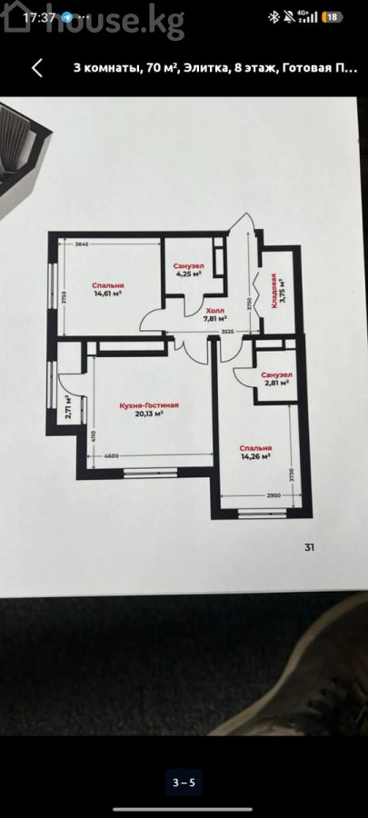 $ 86 250 $ 1 261/м2 7 552 913 сом 110 426 сом/м2