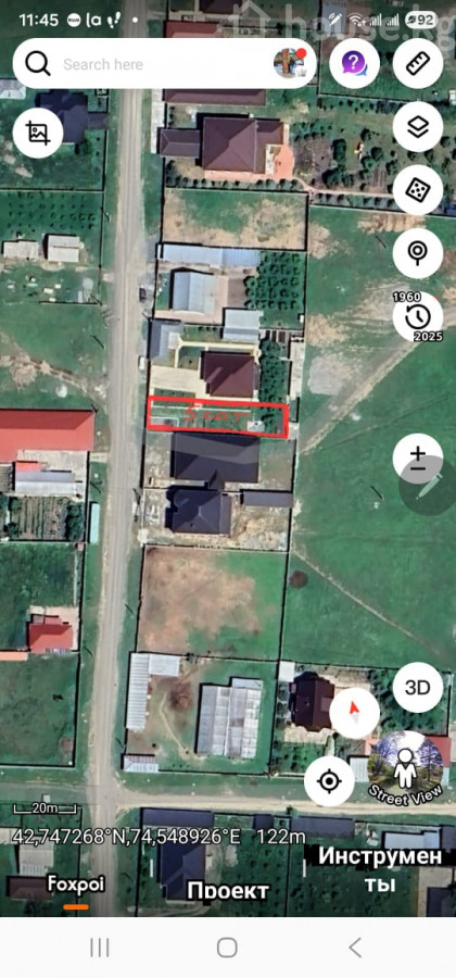 Продается участок под строительство начало с. Байтик , в южной части города Бишкек. Безопасный , тихий, спокойный район. Широкая улица, хорошие соседи. Здесь на участке 5 соток, размером 11.3м х 45м, вы можете построить свой дом мечты по своему проекту: удобный, компактный, с сауной, бассейном, игровой зоной для детей, зоной барбекю, с современным ландшафтным дизайном, с клумбой любимых цветов и садом любимых фруктов... - имеется скважина - центральная канализация проходит рядом - газ будет в перспективе - на участке имеются хоз. постройки для птиц Самая дешевая цена в этом районе 7.65млн.сом (85т$) Свяжитесь с нами +996 555 910946, +996 700 308900