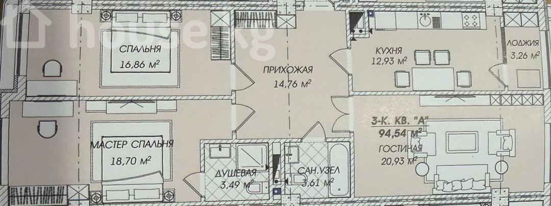 Продажа, 3-комн. кв., элитка, Бишкек, Госрегистр