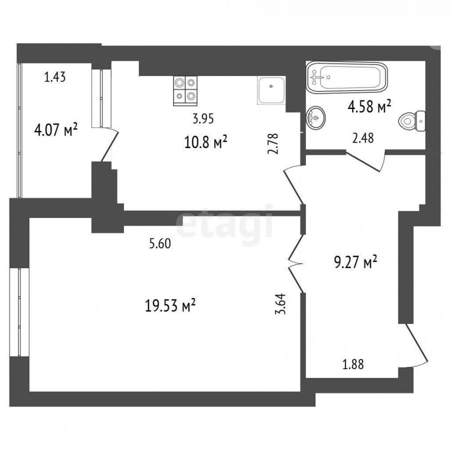 48.23 м2, жилая: 19.53 м2
