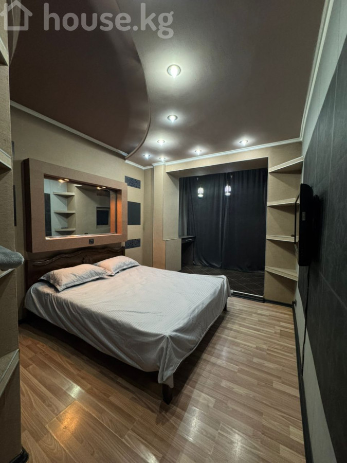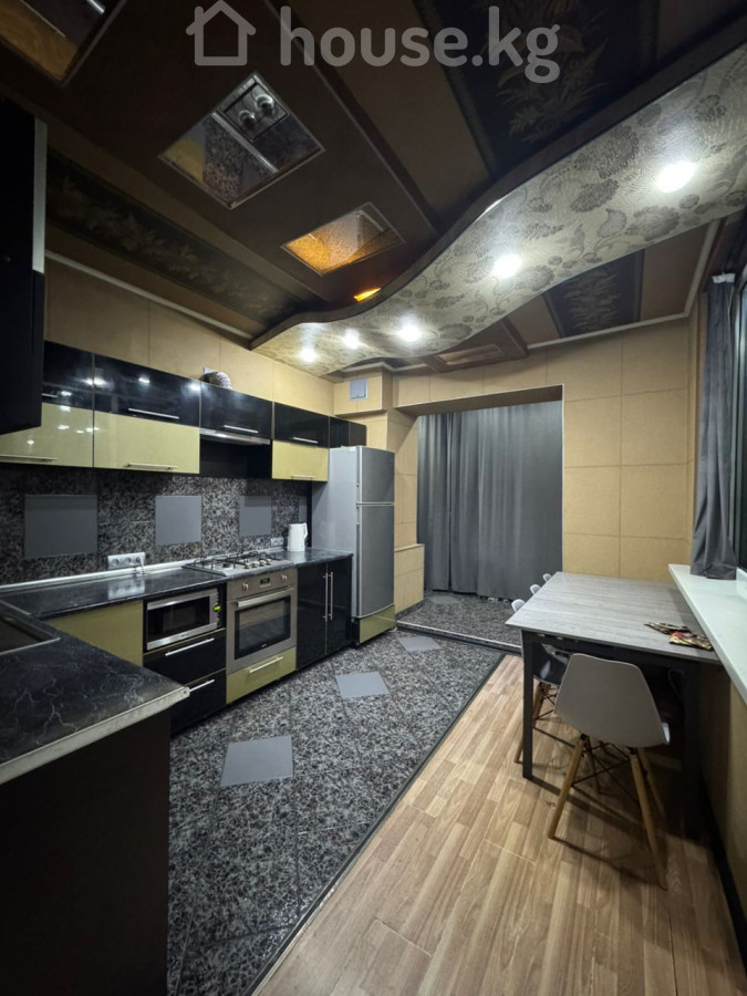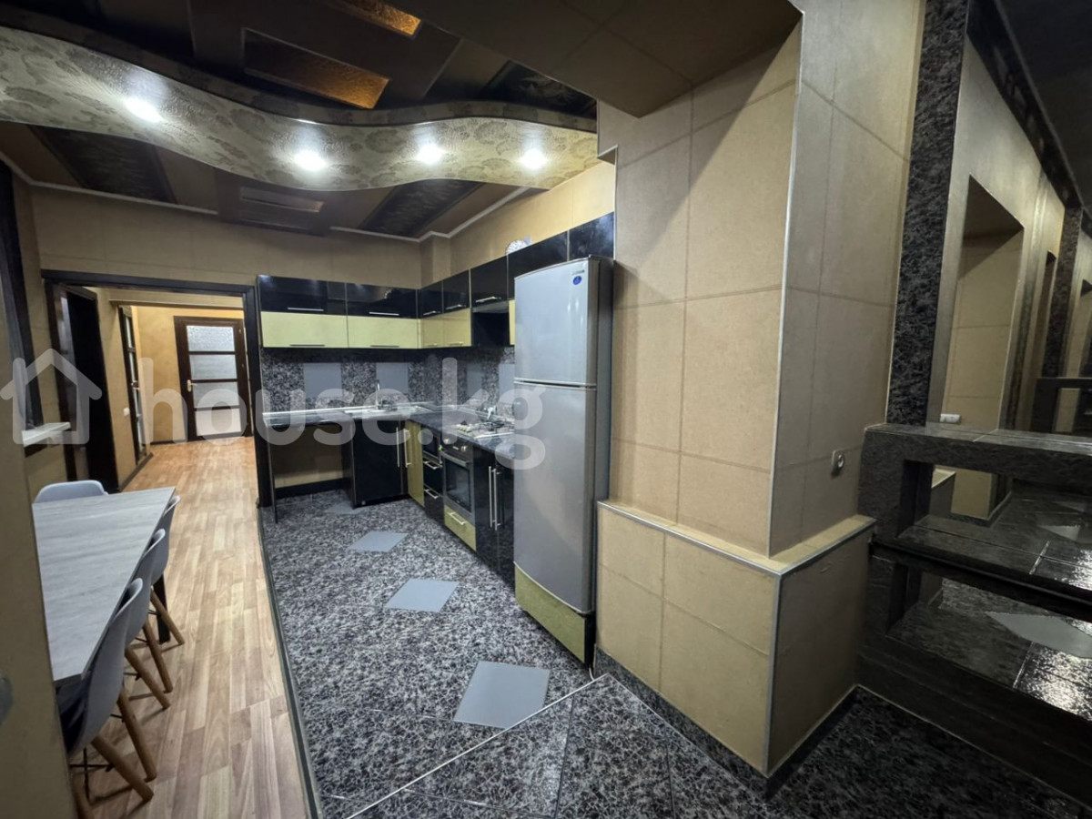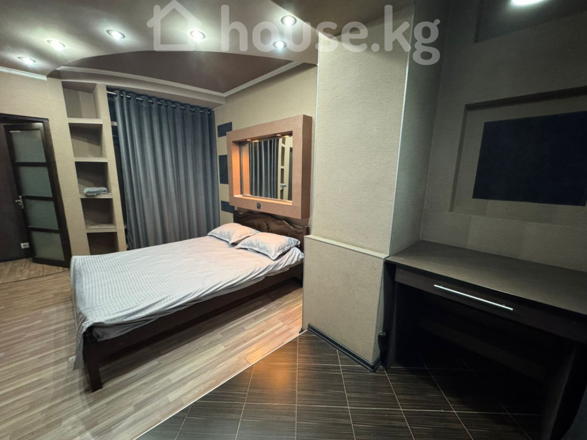 Сдается! 4х комнатная квартира в самом центре города на пересечении улиц Исанова-Боконбаева (Золотой квадрат) с отделкой и мебелью. Отличное месторасположение, развитая инфраструктура, все рядом! Индивидуальная планировка. Дом кирпичный. Все коммуникации – центральные. Огороженный двор с автоматическими воротами для парковки автомобиля. Очень тихий двор, отличные соседи. В двух минутах от парка Тоголок Молдо. В шаговой доступности парк, школы, детсады, кафе, торговый центр, магазины, банки, аптеки, почта, общественный транспорт и тд. Закрытый, огороженный двор. В квартире имеются 2 спальни, комната отдыха, ванная, душевая, туалет, также гостиная соединенная с кухней большим витражным стеклом, лоджией и проходным коридором. В квартире также имеется: - Интернет (Wi-Fi) - Проектор (смотрите фильмы на всю стену) - Телевизоры - Кондиционеры - Полностью меблирована - Ванная, душевая и туалет только после капитального ремонта (итальянский керамогранит, встроенные унитазы (инсталяции), зеркала с подсветкой, тропический душ и нержавеющие смесители) Стоимость проживания составляет 1000$ США в месяц + оплата коммунальных услуг. Обязательное условие – оплата обеспечительного взноса (депозит) в размере 1000$ США. Только для проживания семьи, или не более четырех человек. Только ДОЛГОСРОЧНО! (от 6 месяцев) 4 этаж из 5 (110м2) Без животных! 4-room apartment in the center of the city at the intersection of Isanova-Bokonbaeva (Golden Square) streets with finishing and furniture. Excellent location, developed infrastructure, everything nearby! Individual layout. Fenced yard with automatic gates for parking a car. Very quiet yard, great neighbors. Two minutes from Togolok Moldo Park. Within walking distance of schools, kindergarten, shopping mall, shops, cafes, banks, pharmacies, post office, public transport. The apartment has 2 bedrooms, a recreation room, a bathroom, a shower, a toilet, as well as a living room connected to the kitchen by a large stained glass window, a loggia and a walk-through corridor. The apartment also has: - Internet (Wi-Fi) - Projector (watch movies on the entire wall) - TVs - Air conditioners - Fully furnished - Bathroom, shower and toilet only after major repairs (Italian porcelain stoneware, built-in toilets, illuminated mirrors, tropical shower and stainless steel faucets) The cost of living is $ 1000 per month + payment of utilities. Mandatory condition - payment of a security deposit in the amount of $ 1000 Only for family accommodation, or no more than four people. Only LONG-TERM! (from 6 months) 4th floor out of 5 (110 m2) No animals!