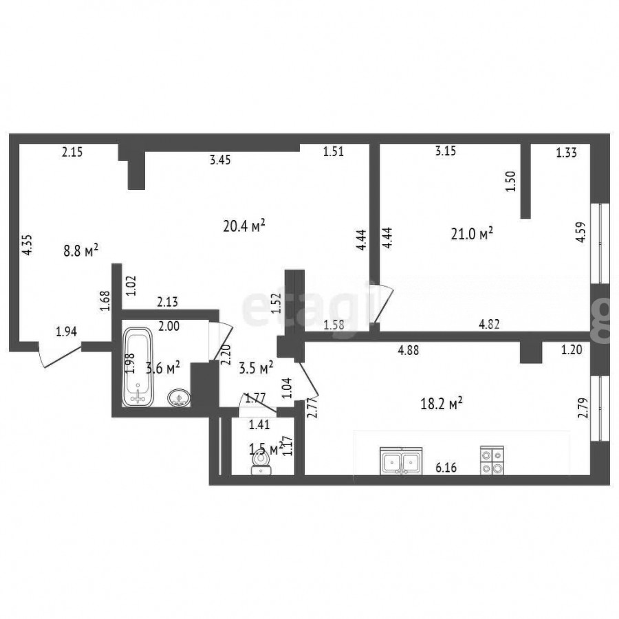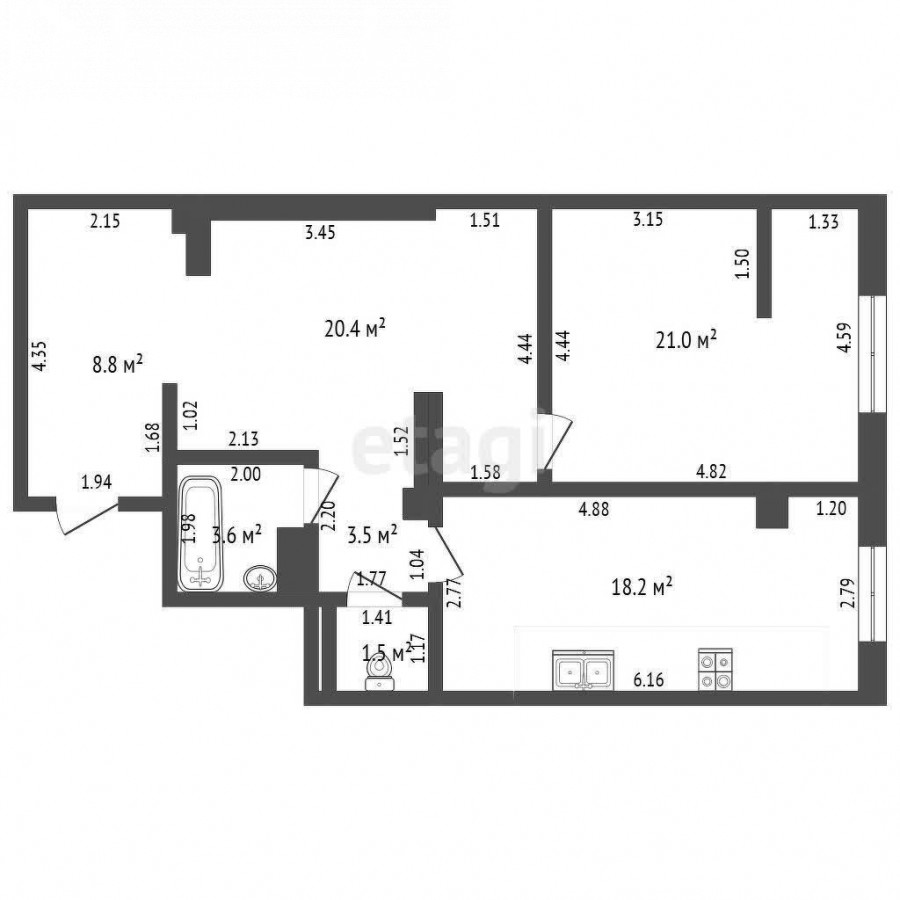 2-комн. кв., 77 м2