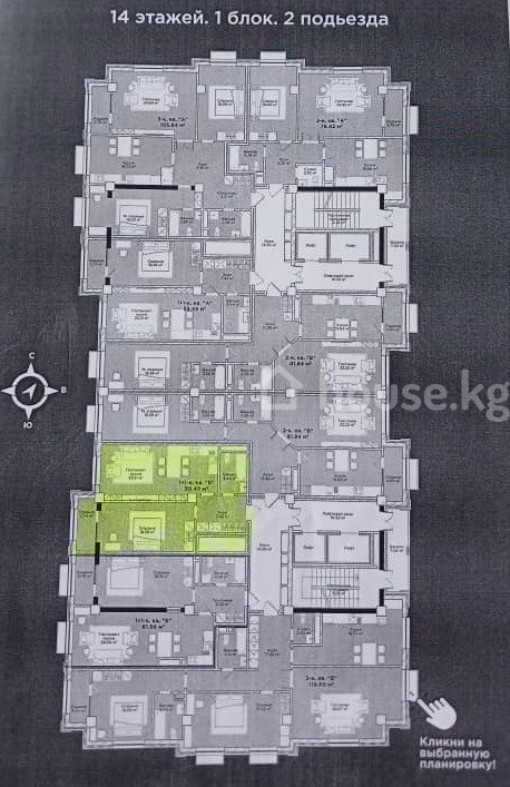 2-комн. кв., 60 м2, 12 этаж из 14