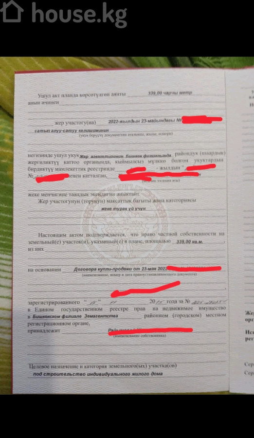 🚨 Срочно. Продается участок площадью 4 соток 🏠 Назначение: под ИЖС 📃 Документы: красная книга ⚒️ Участок огражден,установлены металлические ворота.Ровный,удачный для планировки 🚰 Инфраструктура: канализация,свет,газ в 20м от участка. 🕌 Окружение:В 200 метрах искусственный пруд, летом для купания,зимой каток. Недалеко Аламединский рынок, Дордой рынок . ❕ Идеально как для жилья и под бизнес. 📍Адрес:Бишкек, Свердловский район,ул Суюмбаева ( Недалеко от Карачевой рощи) 🔷Цена: 58 тыс долларов 🔔По всем вопросам обращайтесь по номеру 0500188497 (Марат)