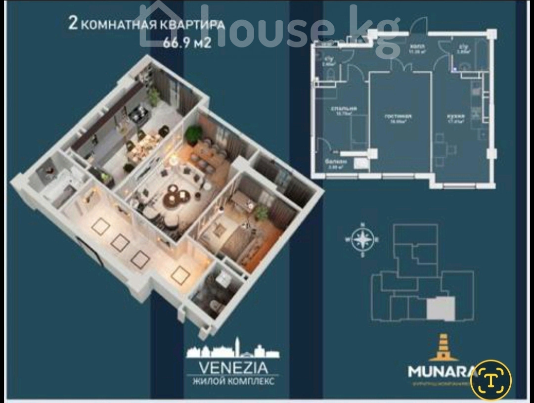 🏡 Продаётся 2-комнатная квартира в ЖК VENEZIA 📍 Район: Токтогула / Тоголок Молдо 📐 Площадь: 67 м² 🏢 Этаж: 2 из 17 🧱 Дом: кирпичный, премиум класс 🏗 Застройщик: Мунара Строй ✨ Удобная и продуманная планировка 🔥 Все центральные коммуникации, центральное отопление 📅 Сдача ПСО: 4 квартал 2026 года 🚶♂️ В шаговой доступности: 🌳 сквер 🏥 больницы и поликлиники 🏫 школы 🧸 детские сады 🛍 торгово-развлекательные центры 💰 Цена: 88 000 $ 📞 0705 155 202 — Жылдыс