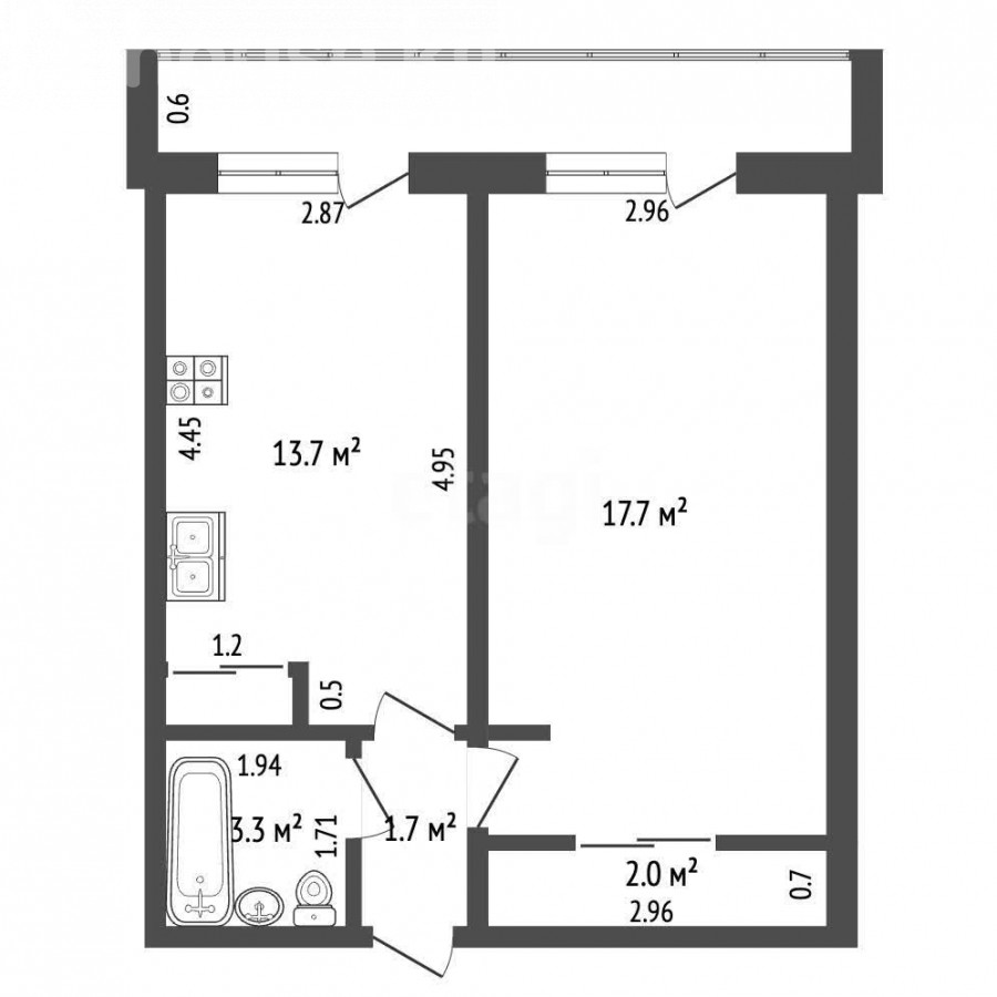 39 м2, жилая: 21 м2