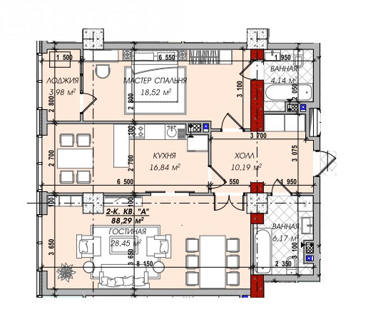 3-room apartment, 90 sq. m