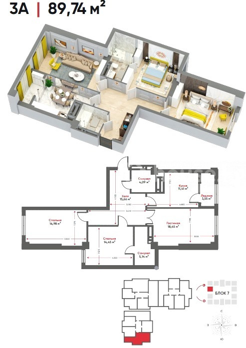 3-room apartment, 89.74 sq. m