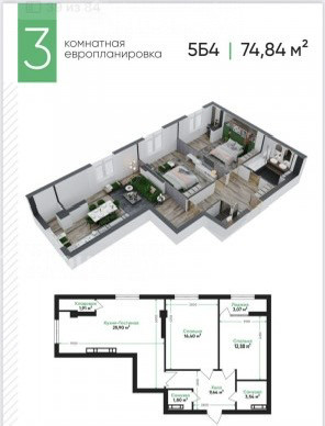 3-room apartment, 74.84 sq. m