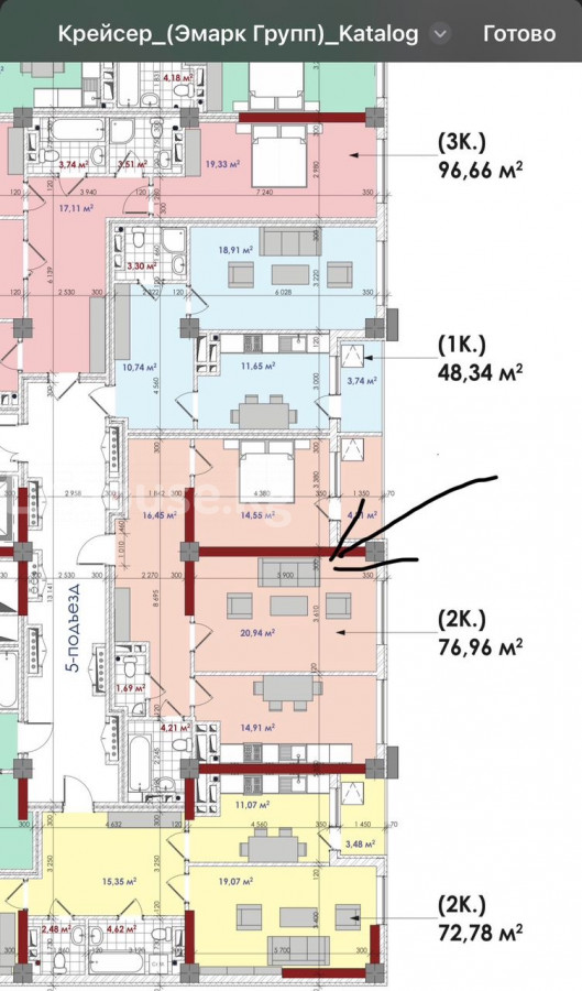 Продается 2х комнатная квартира ПСО район Советская/Магистраль ЖК Крейсер площадь 77м2 этаж 2/15 можно делать ремонт цена 99.000$ ID: 75205