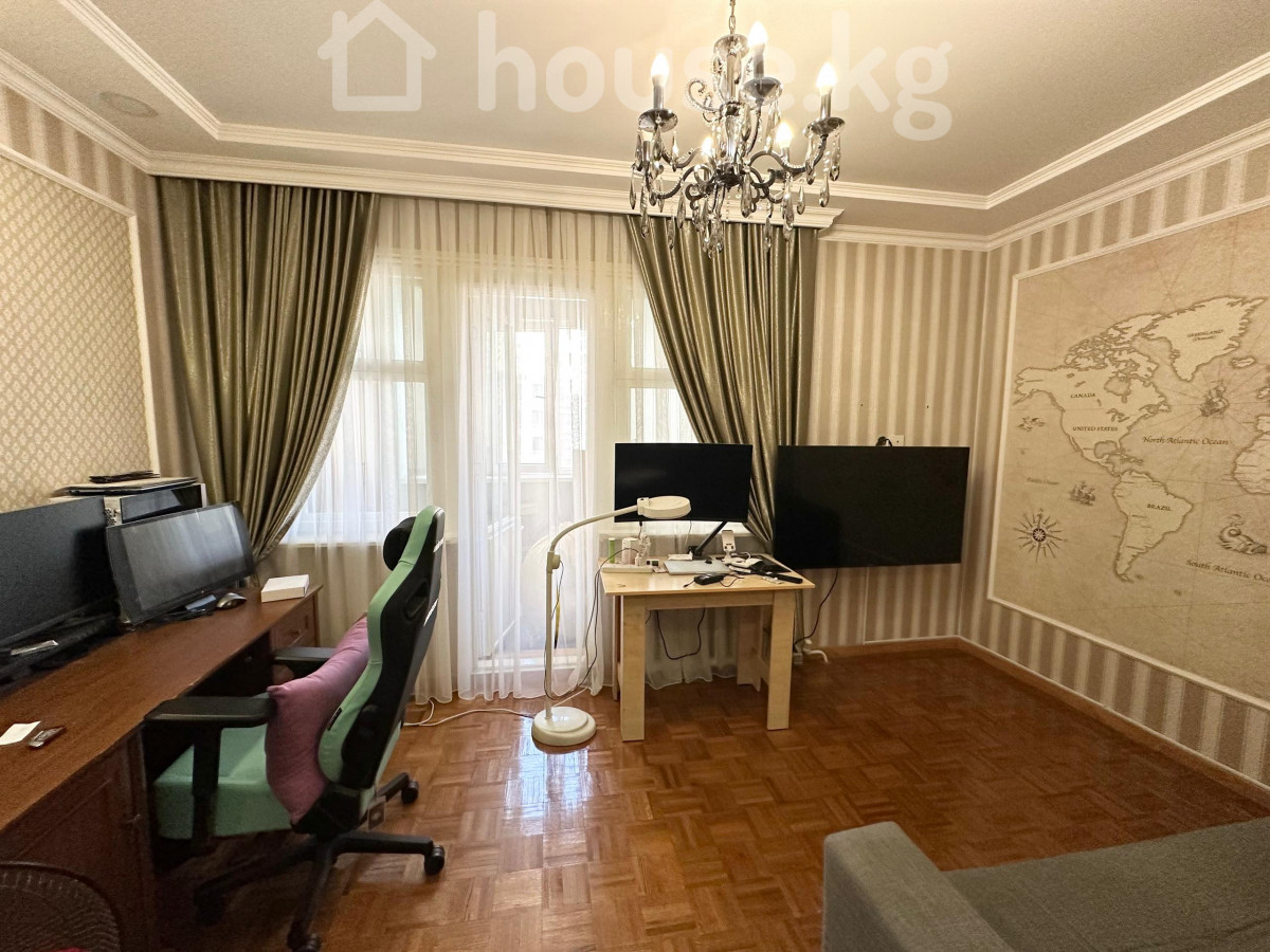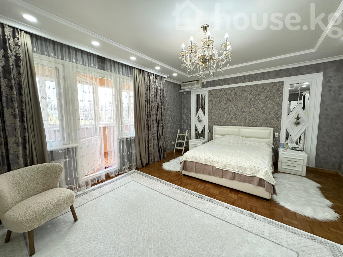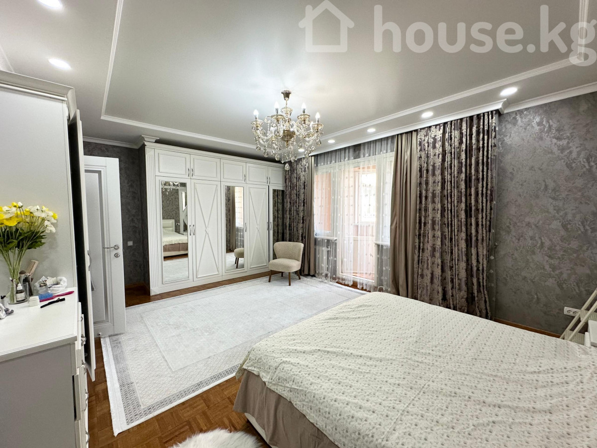 Дордой Плаза ( Гоголя / Ибраимова ) Продается эксклюзивная 4 комнатная квартира общей площадью 222.5м2 Клубный дом всего 9 этажей ( 21 квартира ) Тишина и комфорт в центре города Квартира находится на 6 этаже Расположение окон : юг / север восток / запад Функциональная , продуманная планировка : полноценные 4 комнаты , три санузла а так же постирочная комната , мастер спальня , детская , рабочий кабинет , с каждой комнаты выходят большие лоджии ! Дом на красной книге со всеми центральными коммуникациями ! Все документы на руках Шикарная локация в центре города , абсолютно все необходимое для жизни в двух минутах ходьбы Мебель остается по договоренности Дополнительная информация при осмотре квартиры Цена: 320 000$ торг по факту По всем вопросам обращайтесь по телефону: 0706 141 201 0997 141 201
