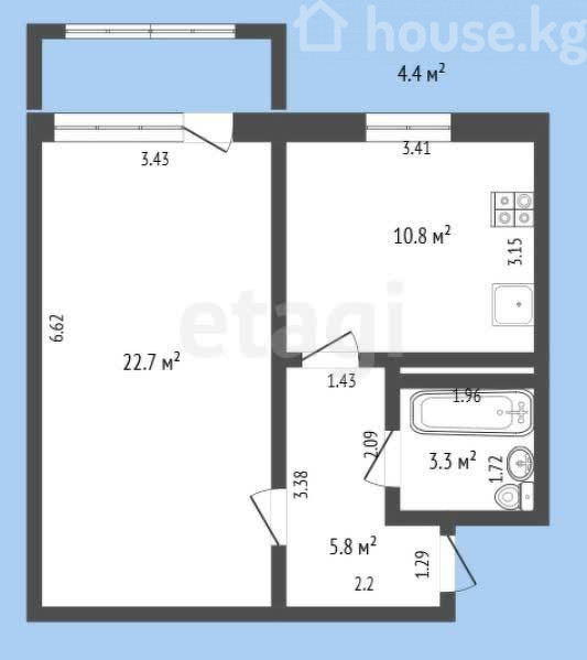 1-room apartment, 42 sq. m