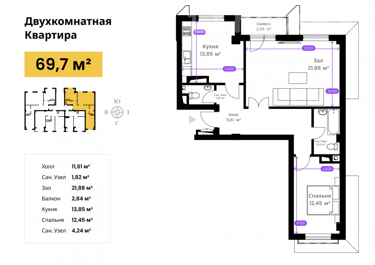 2-room apartment, 67 sq. m