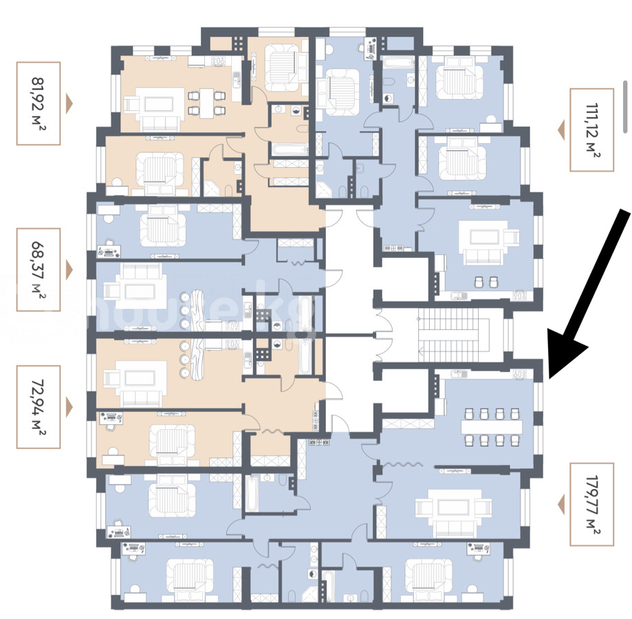 Продается 4 комнатная квартира в жилом комплексе «Valencia» от строительной компании Nurzaman УРБАН ВИЛЛЫ - всего 4 этажа 📍село Орто-Сай ◾️Сдача 2026 год - 3 квартал ◾️На 3 этаже из 4 ◾️Площадь: 180 м2 ◾️Сквозная планировка - север, юг ◾️Полный пакет разрешительных документов ◾️Индивидуальное газовое отопление ◾️Подземный паркинг ◾️Двор без машин ◾️Стоимость: 1650$ за м2 = 297.000$ = 25.957.000 сом