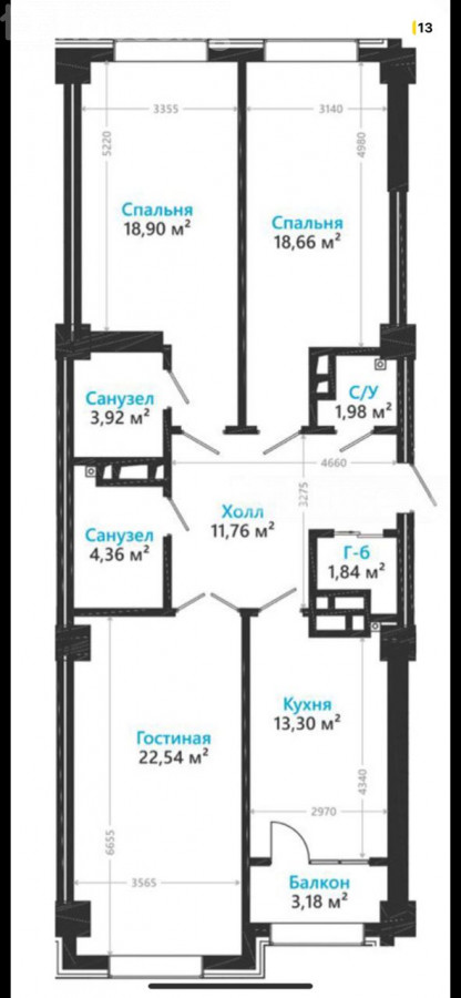 3-room apartment, 115 sq. m