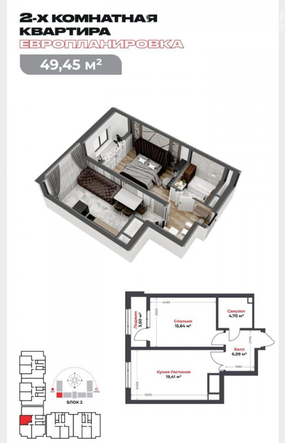 1-room apartment, 49.45 sq. m