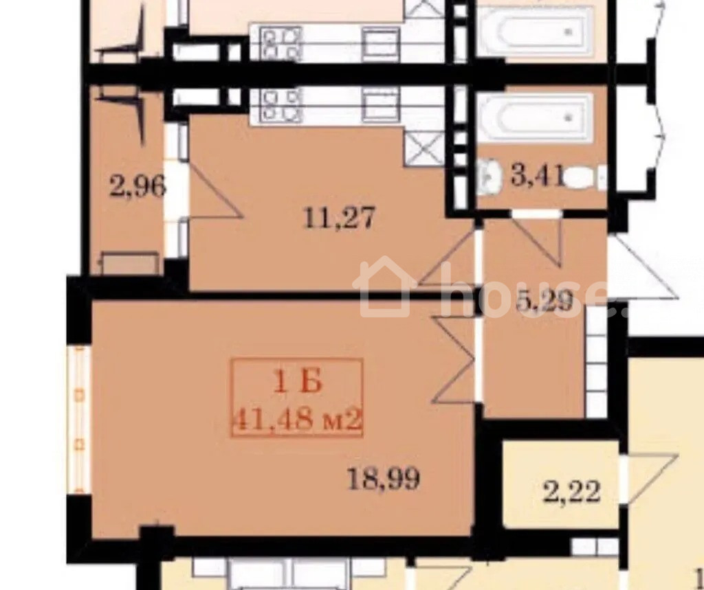 1-room apartment, 41.48 sq. m