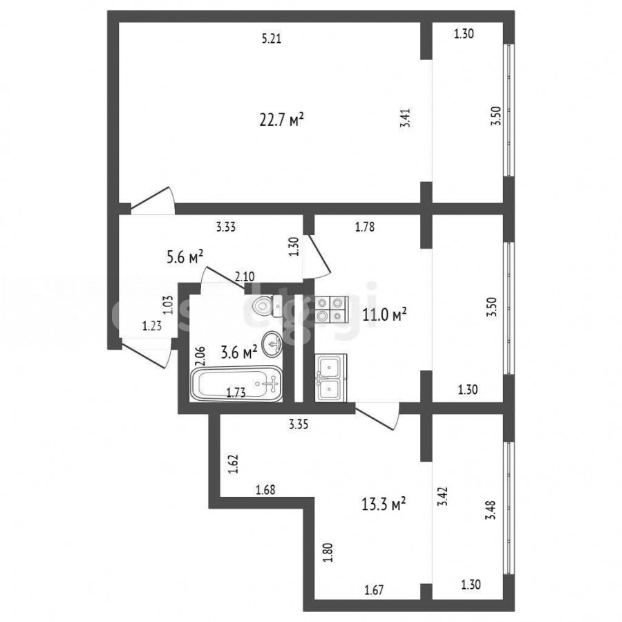 2-room apartment, 56 sq. m