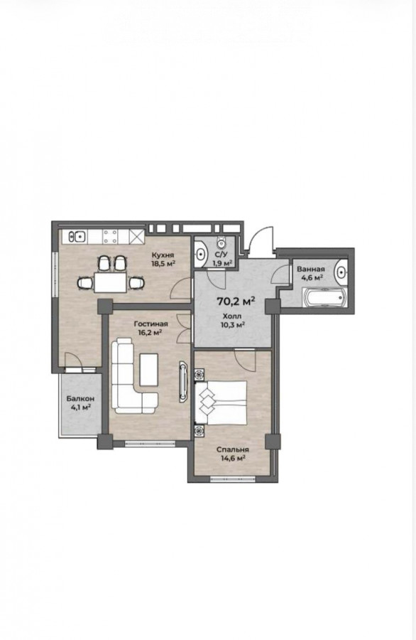 2-room apartment, 69 sq. m