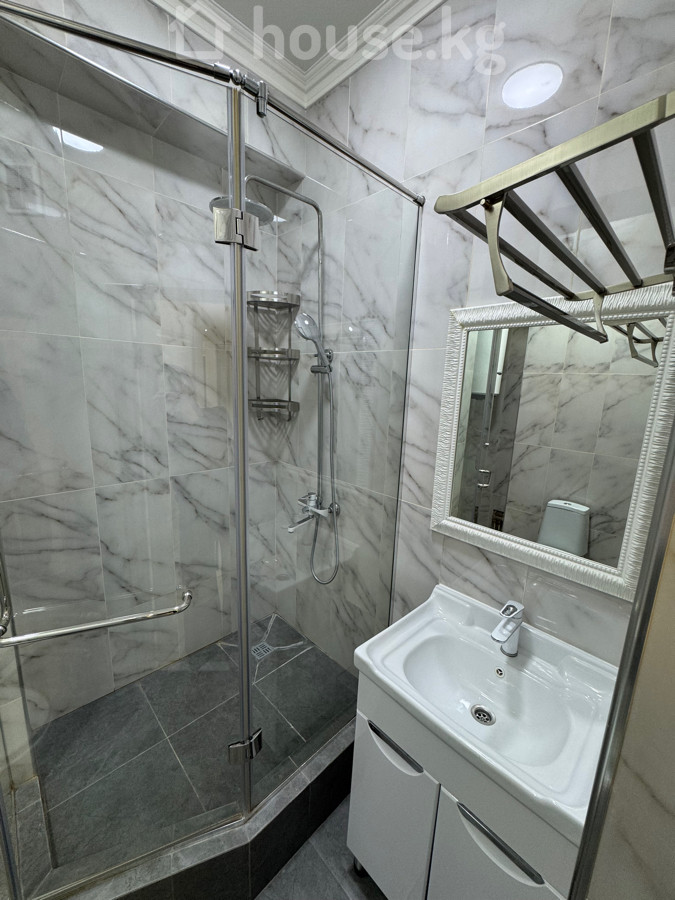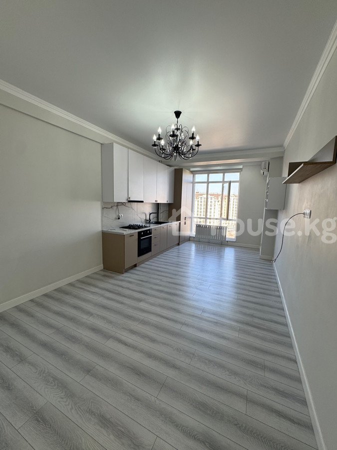 Просторная 1‑комнатная квартира с кухней‑гостиной в современном доме. Район: Асанбай Ул. Куттубаева 15/1 Характеристики: - Планировка: прихожая с местом под шкаф, отдельная спальня, большая кухня‑гостиная во всю длину комнаты, санузел. - Отделка в светлых тонах: ламинат под серое дерево, ровные стены, потолки с декоративными карнизами и точечным освещением. - Кухонный гарнитур встройка: верхние и нижние шкафы, столешница под камень, фартук под мрамор, варочная поверхность, духовой шкаф, вытяжка, мойка с черным смесителем. - Окна в пол в зоне кухни‑гостиной, выход на балкон/лоджию, много естественного света. - Разводка под ТВ и интернет, установлены розетки и выключатели. - Радиаторы отопления, кондиционер наружный блок установлен. - Входная группа дома ухоженная, во дворе детская площадка, скамейки, озеленение, пешеходные дорожки, несколько входов в подъезд с пандусами. Преимущества: - Продуманная планировка с большой общей зоной и отдельной спальней. - Нейтральный современный интерьер — легко расставить мебель и декор. - Высокие потолки, качественные межкомнатные двери, зеркало в прихожей. - Дом с благоустроенной территорией и современной фасадной отделкой.