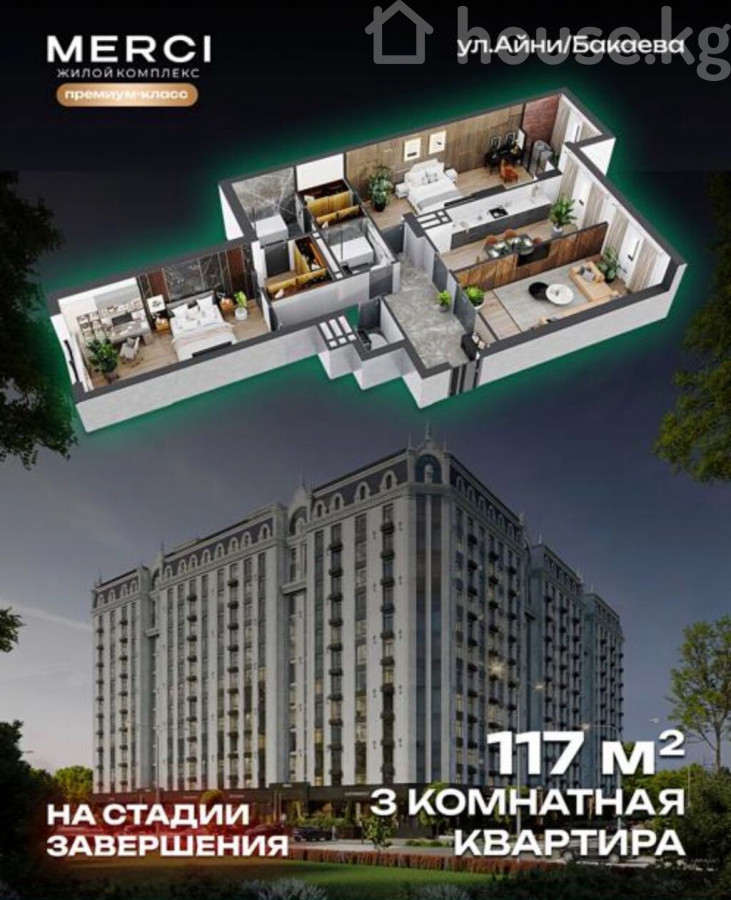 3-комнатная квартира (элитка) в Бишкек Район: рядом Asia Mall ЖК: «МЕРСИ» Площадь: 117 м² Этаж: 11 из 14 Дом: монолит-кирпич, 2024 Состояние: ПСО (под ремонт) Кухня: 16 м² Планировка: 3 комнаты, 2 санузла, 2 гардеробные Отопление: газовое (автономное) Документы: долевое участие Сдача: март 2026 ID: 82300