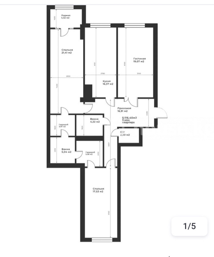 3-room apartment, 116 sq. m