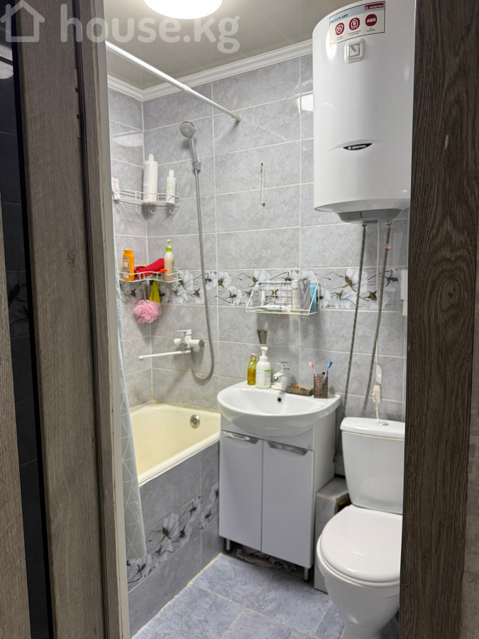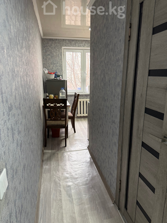 1‑комнатная квартира с отдельной кухней и санузлом(104 серия, 3 этаж)не угловая в 7 микрорайоне ДСК - Планировка: входной коридор с вместительным встроенным шкафом‑купе и антресолями; раздельная кухня; совместный санузел с ванной. - Кухня: два окна ПВХ (одно в комнате, одно на кухне), рабочая стенка с мозаичной плиткой, столешница, встроенная варочная панель газовая на 4 конфорки, духовой шкаф электрический, верхние и нижние шкафы, место под холодильник и стиральную машину. - Санузел: ванна, умывальник с тумбой, зеркало/полка, унитаз, душевая лейка; установлен накопительный водонагреватель. - Отделка: современные межкомнатные двери, натяжные потолки, ламинат по всей квартире, обои в едином спокойном тоне, пластиковые окна. - Дополнительно: радиаторы отопления, домофон; в прихожей предусмотрены полки для обуви и место для инвентаря. Ухоженный зеленый двор, дружелюбные соседи, очень развитая инфраструктура(базар,садики, школы -все рядом, нет шума от трассы, абсолютная тишина) Квартира светлая, аккуратная, с готовой функциональной кухней и полностью оборудованным санузлом. Продается без посредников