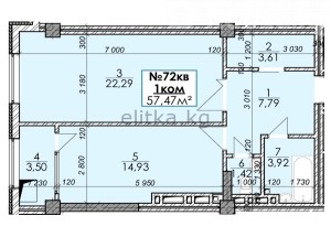 57.47 sq. m, living: 14 sq. m, kitchen: 22 sq. m