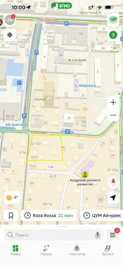 Продаётся участок в самом центре города Ориентир: пересечение ул. Кулатова / Игембердиева Идеальный вариант под многоквартирный жилой дом, бизнес-центр или любой коммерческий проект. • Площадь: ширина 55 м, глубина 35 м • Правильная форма, удобная для проектирования • Первая линия, высокий трафик, деловой центр города • Все коммуникации рядом Цена: 100 000 $ за сотку