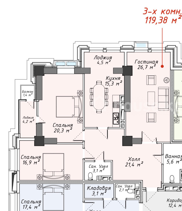3-room apartment, 119 sq. m