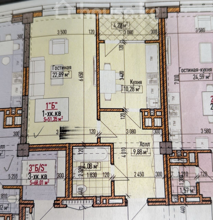 1-room apartment, 51 sq. m