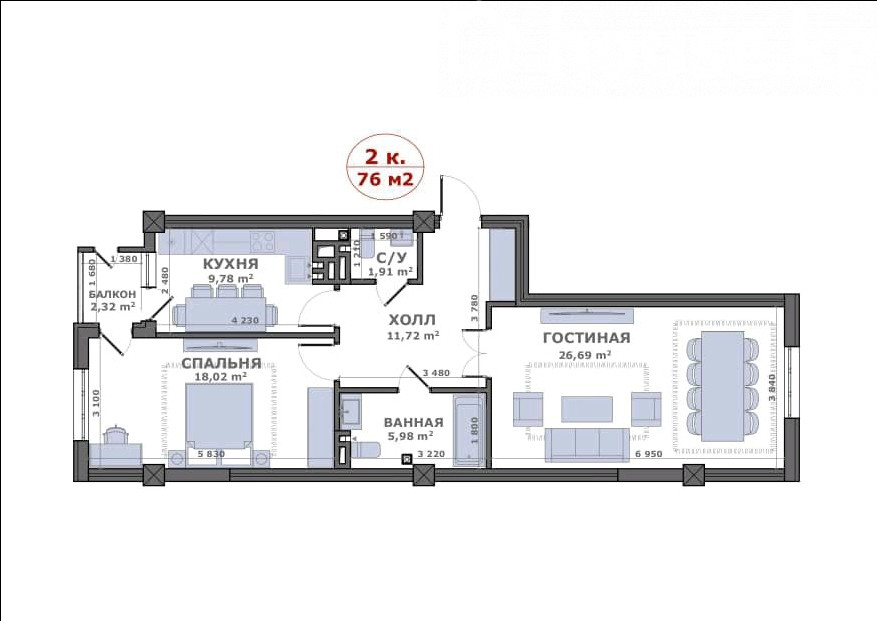 76 м2