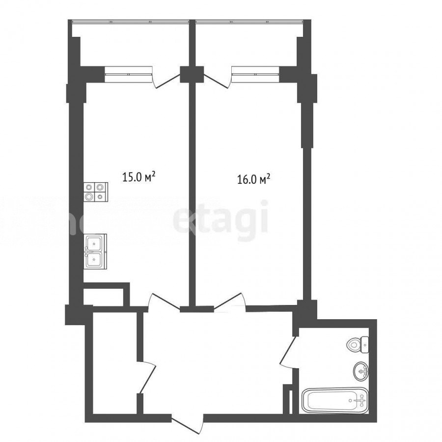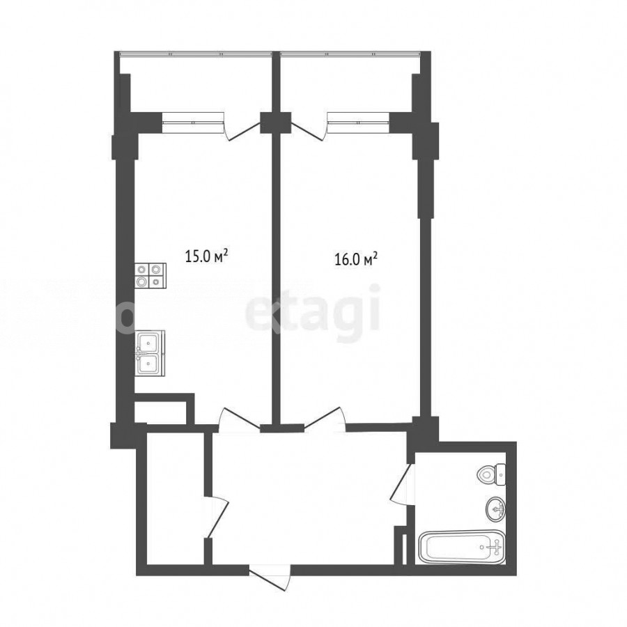 56.53 м2, жилая: 16 м2