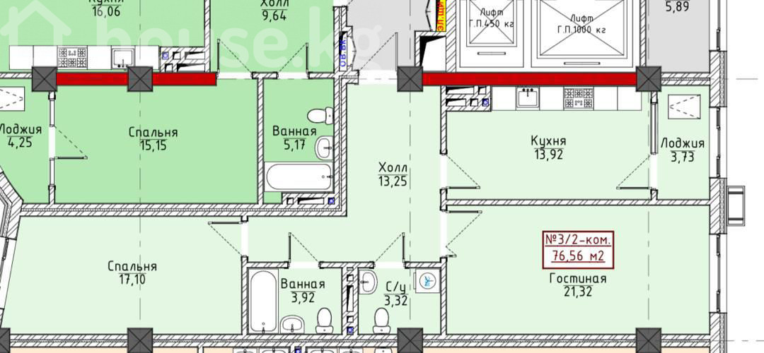 76.56 м2, жилая: 38.42 м2, кухня: 14 м2