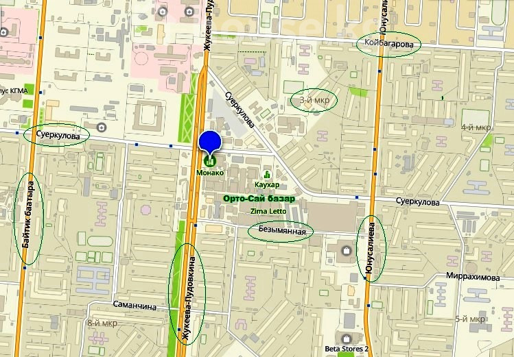Супер локация! Сдаётся коммерческое помещение (магазин, офис и т.д.) на Орто-Сайском рынке * можно под любой бизнес, * торгово-офисный комплекс "Монако", * угол ул. Жукеева-Пудовкина/Суеркулова * помещение "под ключ" готов будет через месяц, * площадь: 660 кв.м., * весь 2й этаж (имеется и эскалатор и 2 лифта), * 7 помещений, подсобное помещ, санузел и т.д., * на длительный срок, * имеется депозит.