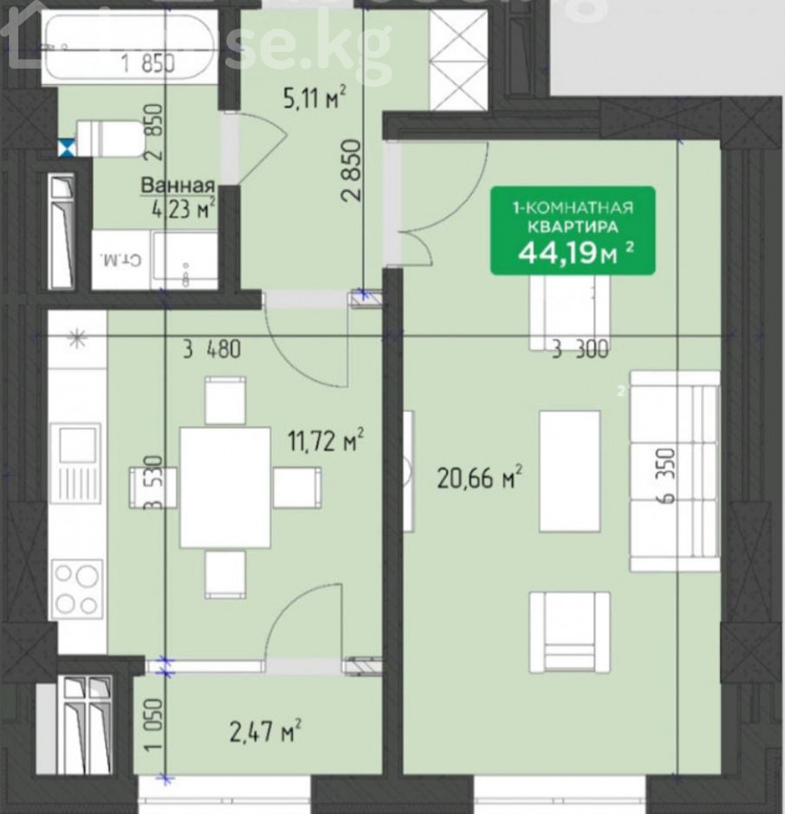 $ 62 650 $ 1 352/м2 5 487 514 сом 118 422 сом/м2