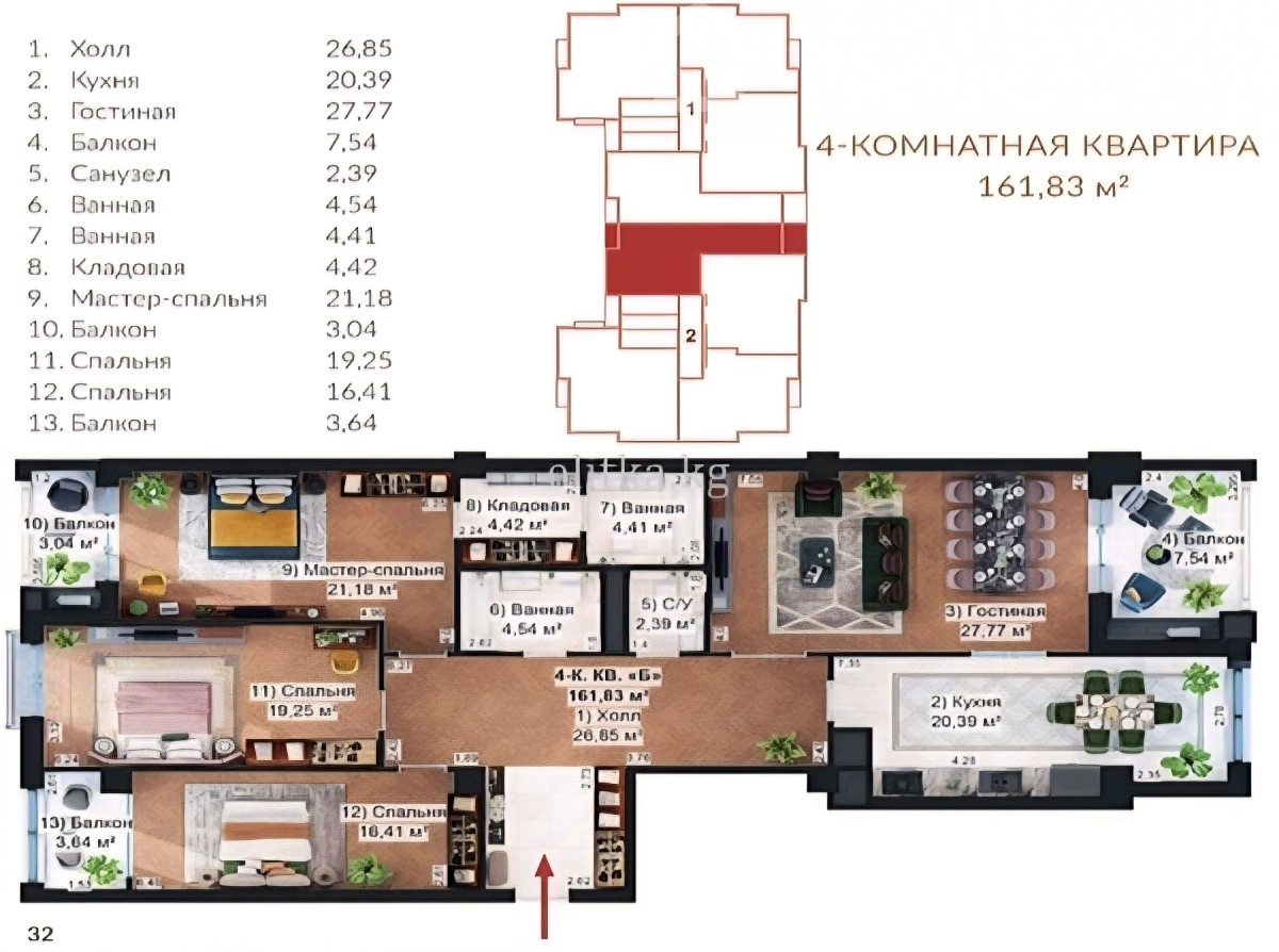 161.4 м2, кухня: 20 м2
