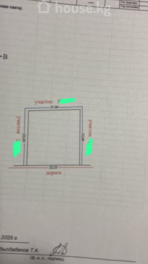 Продается участок в Кызыл ТУУ По первой линии Участок 5 сотых Формы участка 22,23 м х 23,00 м Документы : Красная Книга (на руках) Участок находиться в центре Цена : 38 500 $ + торг уместен Кыргыз Недвижимость ID: 81437