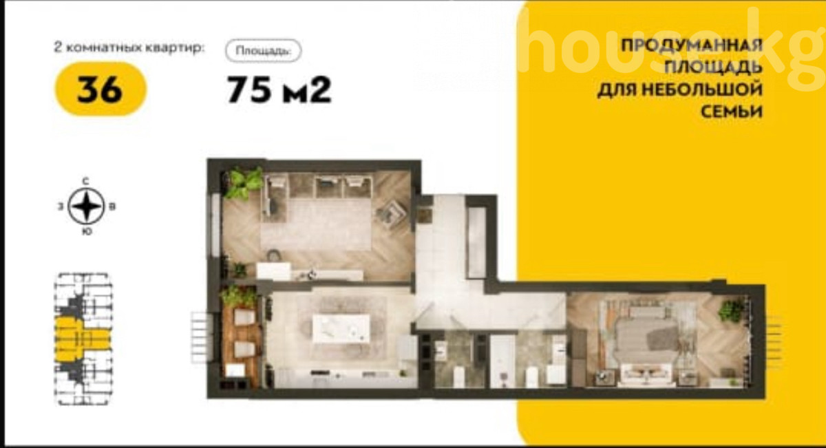 Дом сдан! Продаю просторную 2-комнатную квартиру в экологически чистом районе! О КОМПЛЕКСЕ: • ЖК DEM — современный жилой комплекс от СК «Кадам». • Локация: ул. 7 Апреля (чуть ниже Магистрали). Рядом Ботанический и Яблоневый сады - чистый воздух и отсутствие смога. • Материалы: Жженый кирпич + базальтовое утепление. Фасад - керамогранит. О КВАРТИРЕ: • Площадь: 75 кв.м (идеально для большой семьи). • Потолки: 3 метра (ощущение пространства). • Отопление: Индивидуальное газовое (свой котел - экономия и комфорт). • Вода: Собственная артезианская скважина. • Шумоизоляция: Улучшенная защита от шума между квартирами. ПРЕИМУЩЕСТВА: ✅Закрытый двор «без машин» (безопасно для детей). ✅Видеонаблюдение 24/7 и охрана. ✅Развитая инфраструктура: гипермаркет Globus, ✅ школы «Билимкана» и «Точка Роста», фитнес-центр Family Цена:92.000$ Телефон: 0500885252