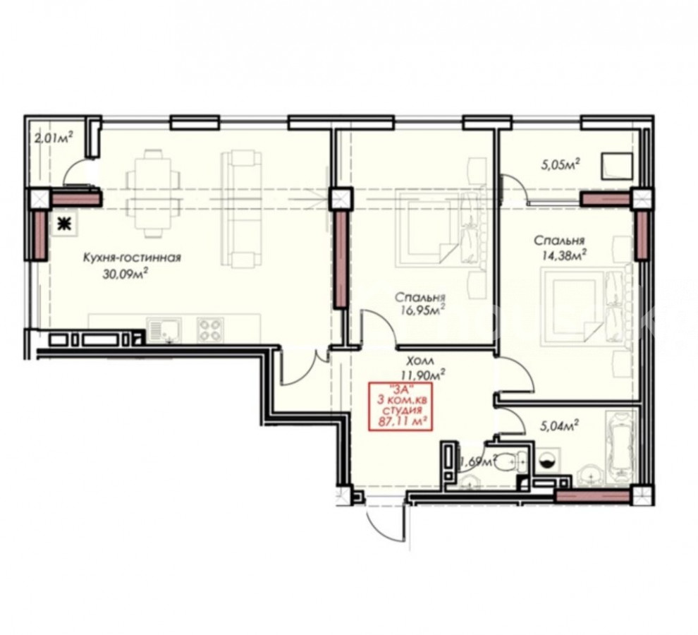 3-комн. кв., 87.11 м2