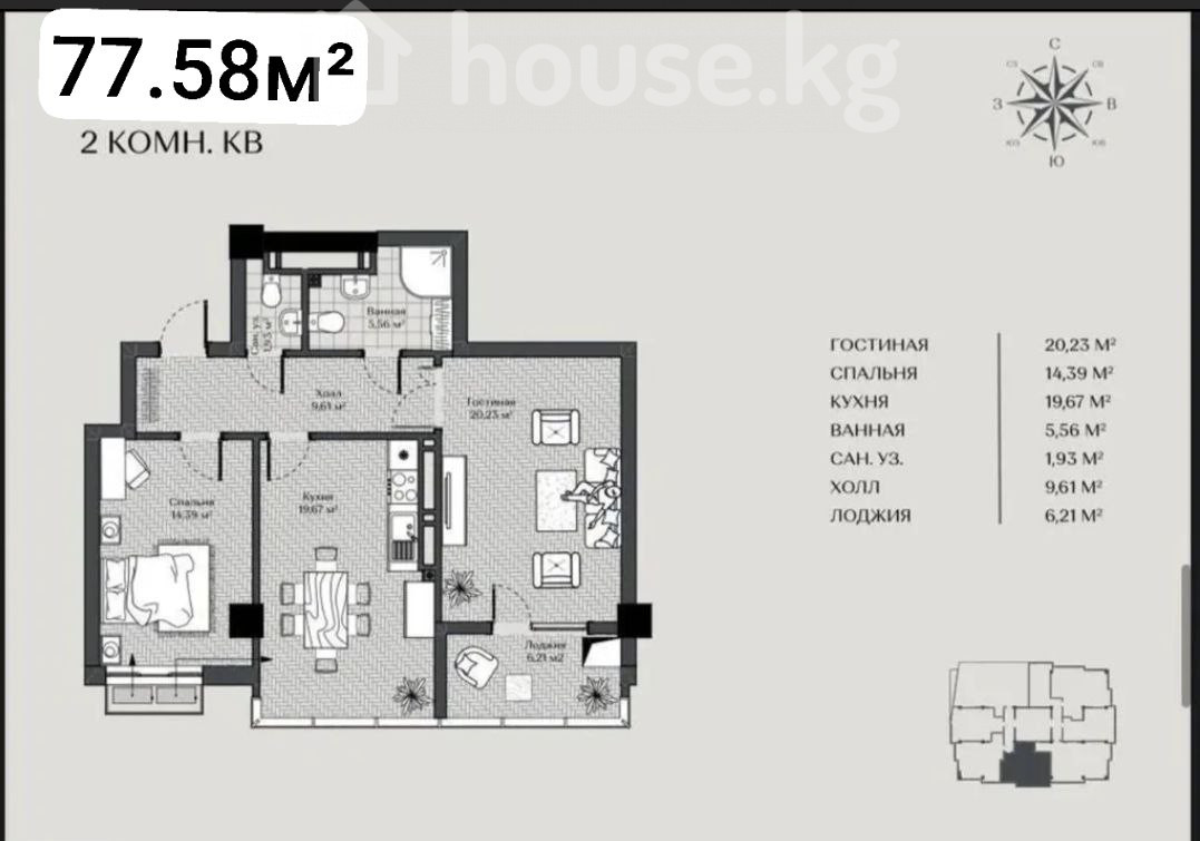 2-комн. кв., 77 м2