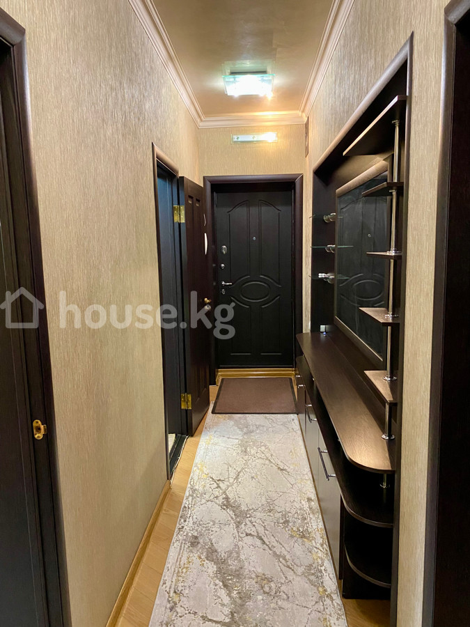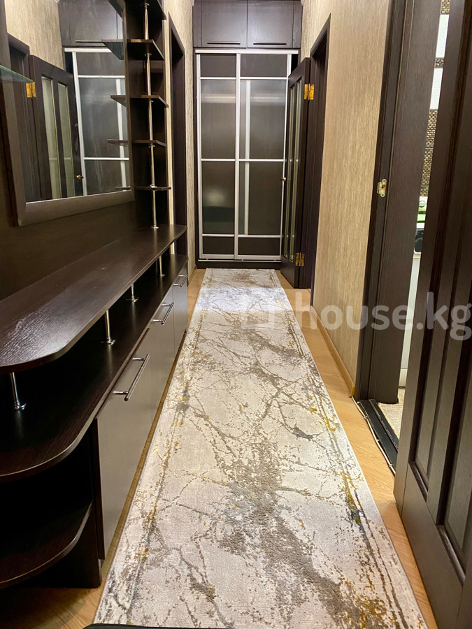 Сдается уютная 2‑комнатная квартира с продуманной планировкой и современной отделкой. По адресу 5 мкр 6 дом . - Просторный светлый коридор с большим зеркалом, открытыми полками, тумбой с выдвижными ящиками и встроенным шкафом‑купе до потолка. - Гостиная с большим угловым диваном, настенным светильником‑люстрой, ТВ на тумбе и выходом на застекленный балкон. - Балкон остеклен, установлен подоконный столик. - Полы: ламинированное покрытие, в комнатах и коридоре — длинные ковровые дорожки и ковер с узором. - Окна деревянные, радиаторы отопления, межкомнатные двери темного дерева. - Входная дверь металлическая с несколькими замками. - Нейтральные светлые стены, потолочный плинтус, потолочные светильники. Квартира меблирована: диван, телевизор, тумбы, открытые и закрытые системы хранения, зеркало, полки. Подойдет для комфортного проживания !!!
