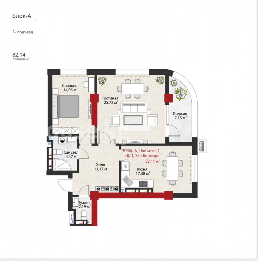 2-комн. кв., 82 м2