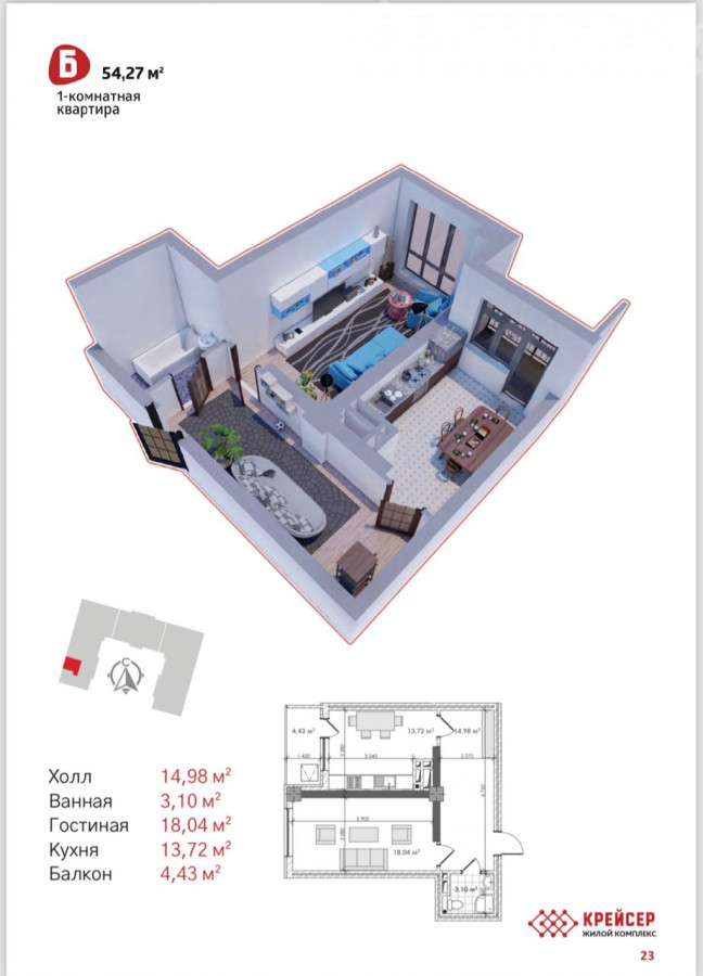 Срочно продаётся! 1-комнатная квартира в мкр. Асанбай ЖК «Крейсер» от СК «Эмарк» • Этаж: 5 из 16 • Блок А • Площадь: 54,6 м² • Состояние: сдан ПСО • Окна выходят в сторону ул. Советской • Развивающаяся инфраструктура, удобное расположение Цена: 1350 $/м² Кыргыз недвижимость! ID: 76405