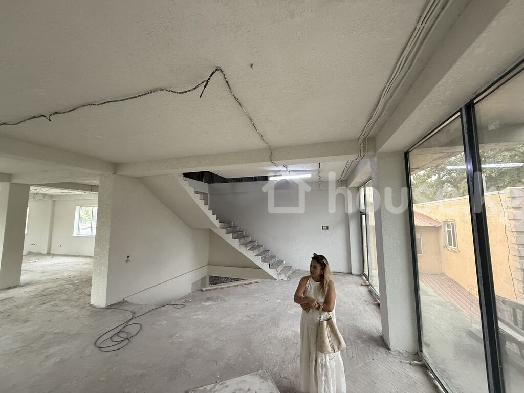 Сдается отдельно стоящее 3-этажное здание + цоколь с панорамным фасадом. Планировка: open space на каждом уровне, большие окна, много света. Черновая отделка, разведена электрика, подготовленные стены и потолки. Широкая лестница, витражные входные группы, отдельный вход, ограждённая территория с воротами. Преимущества: современный фасад, высокие потолки, возможность гибкой планировки или деления на блоки. Подойдёт под: офис, шоурум, учебный центр, фитнес, клинику, сервисный центр, коворкинг и другие коммерческие назначения. Элиза 0705552755 ID: 73354
