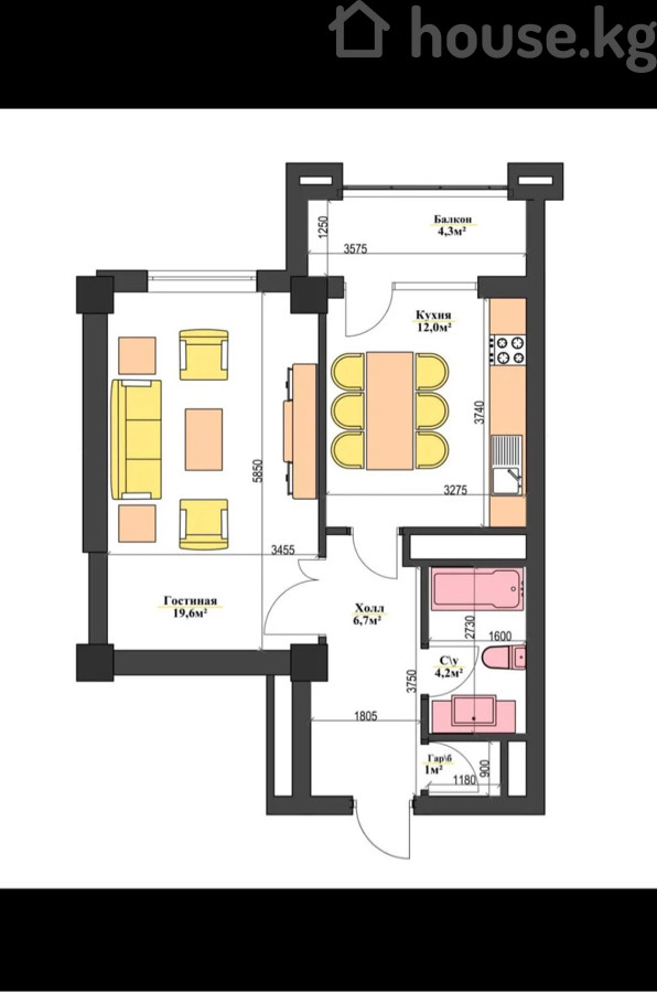 $ 73 000 $ 1 377/м2 6 392 610 сом 120 584 сом/м2
