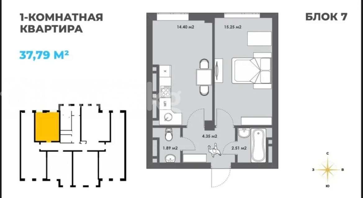1 комнатная квартира В продаже квартира в ЖК Discovery От строительной компании Elite House Район Асанбай Площадь 37.79 кв.м Этаж 11 из 14 Блок 7 (псо осень 2026) 0501777915 Актан ID: 78990