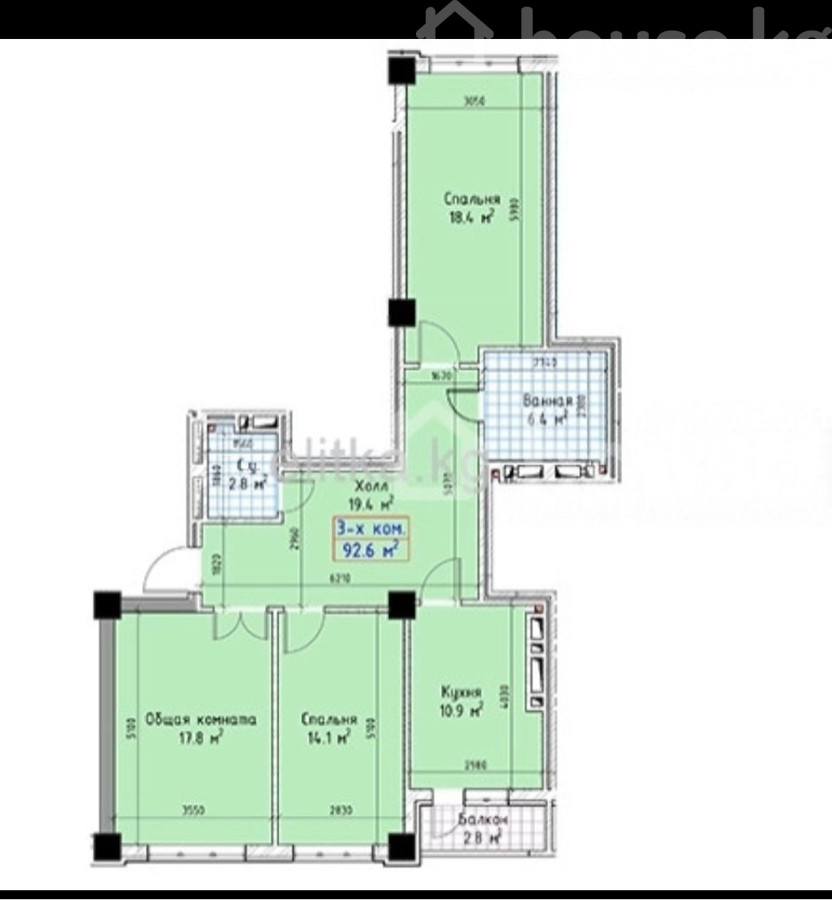 $ 105 000 $ 1 229/м2 9 194 850 сом 107 624 сом/м2